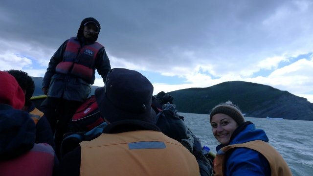 This had to have been the coolest evacuation ever. The boat continued on its tour of the glacier, because there were paying customers already on the boat when we boarded. At this point, we still thought we had to pay for this rescue, but in the end I think the park worked something out and we didn't have to. Too bad for the cheapskates who stayed at the refugio, who weren't willing to pay the money to get on the evacuation boat. Though I imagine there was a later boat that came for them.